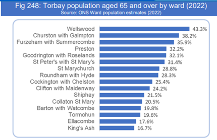 In Torbay we are, as a population, older than England. Our average age is 49. The average age nationally is 40.